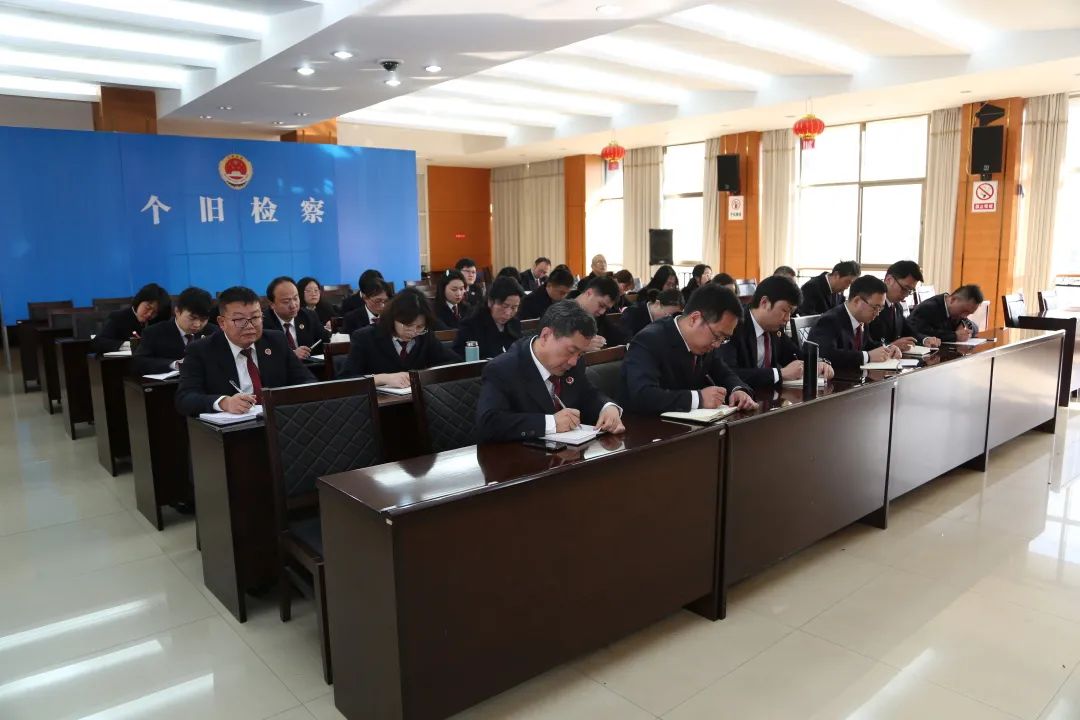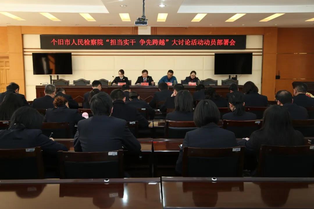 为扎实有序开展好个旧市人民检察院“担当实干 争先跨越”大讨论活动工作,12月20日下午,个旧市人民检察院召开全院干警大会,对大讨论活动工作进行动员部署。会议由副检察长包颖同志主持,检察长糜华同志作动员部署。市委党史学习教育第四巡回指导组相关领导出席会议。