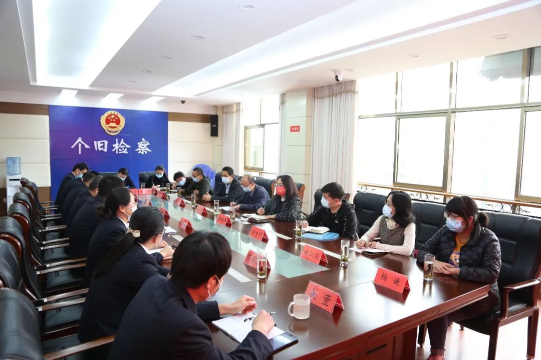为扎实做好检察环节服务保障律师执业权利工作,进一步落实检律定期会商机制,推动检律良性协作,4月19日,个旧市人民检察院与个旧市司法局共同召开主题为“开展定期宣判类刑事案件保障律师执业权利”的检律协作座谈会。