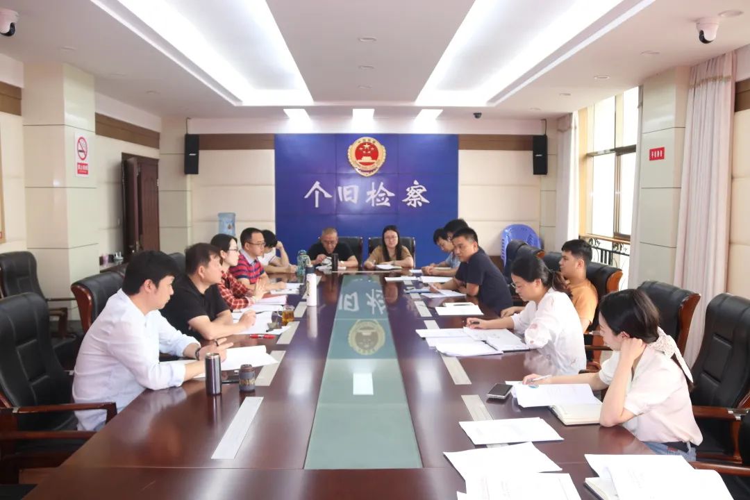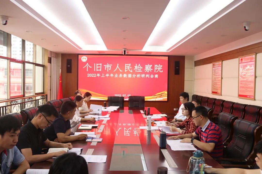 为推进检察办案工作提质增效,202275日,个旧市人民检察院召开上半年业务数据分析研判会商会议。检察长糜华主持会议,副检察长包颖、副检察长孙亮、政治部主任刀辉,各业务部门及综合行政部门负责人、相关工作人员参会。