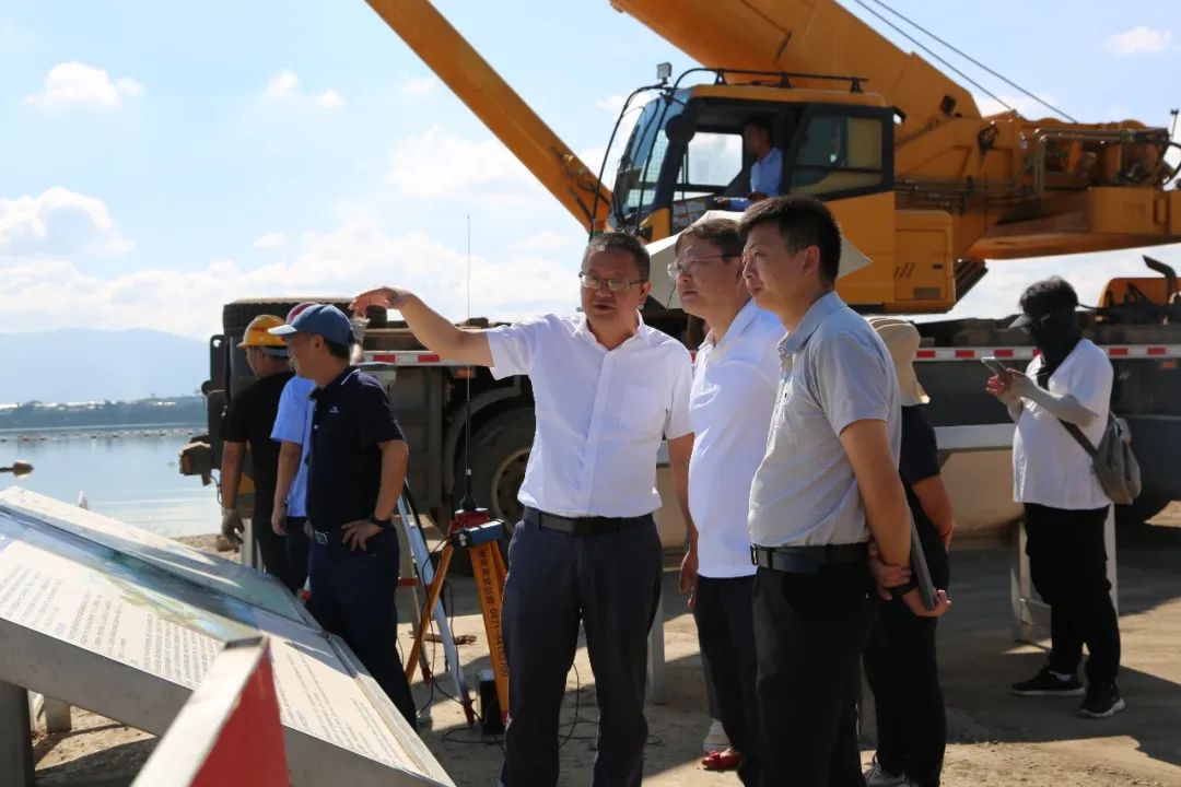 在大屯海水库清淤扩建工程中点就库底清淤、新建人工岛工程进度、大屯海治理现状进行查看。