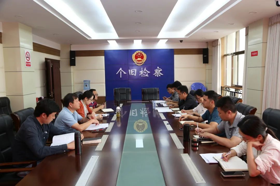 8月12日上午,个旧市人民检察院召开会议,传达学习2022年上半年全州检察业务数据研判会商会议精神。会议由党组书记、检察长糜华主持,班子成员及业务部门负责人参加会议。