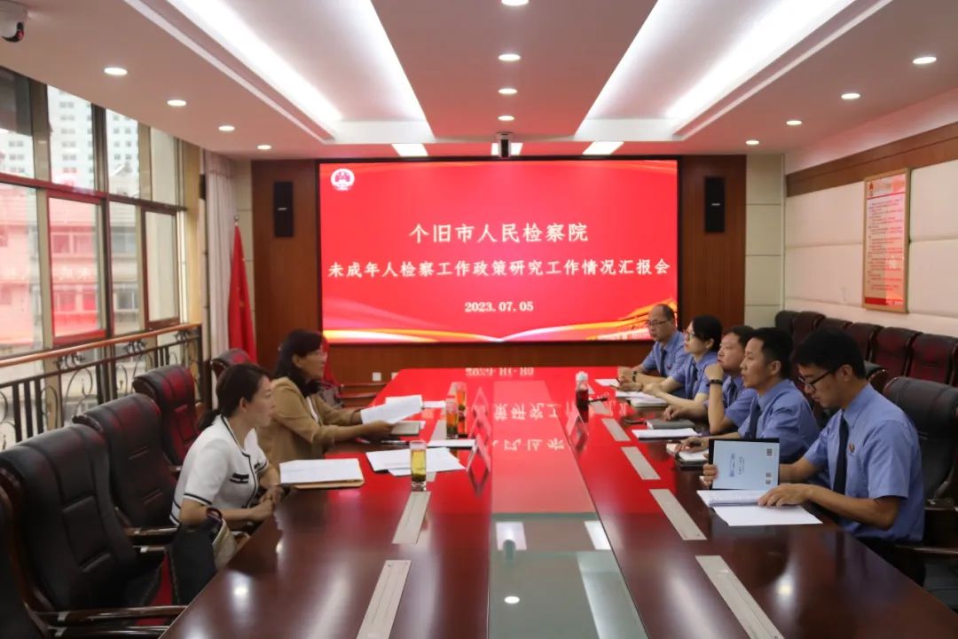7月5日上午,红河州人民检察院副检察长张玲、第九检察部主任陈思夷、法律政策研究室主任张旭莅临个旧市人民检察院调研未检、法律政策研究工作。个旧市人民检察院检察长糜华,副检察长包颖、柴新华,综合业务部主任周曲佳、第二检察部未检检察官参加了调研汇报会。
