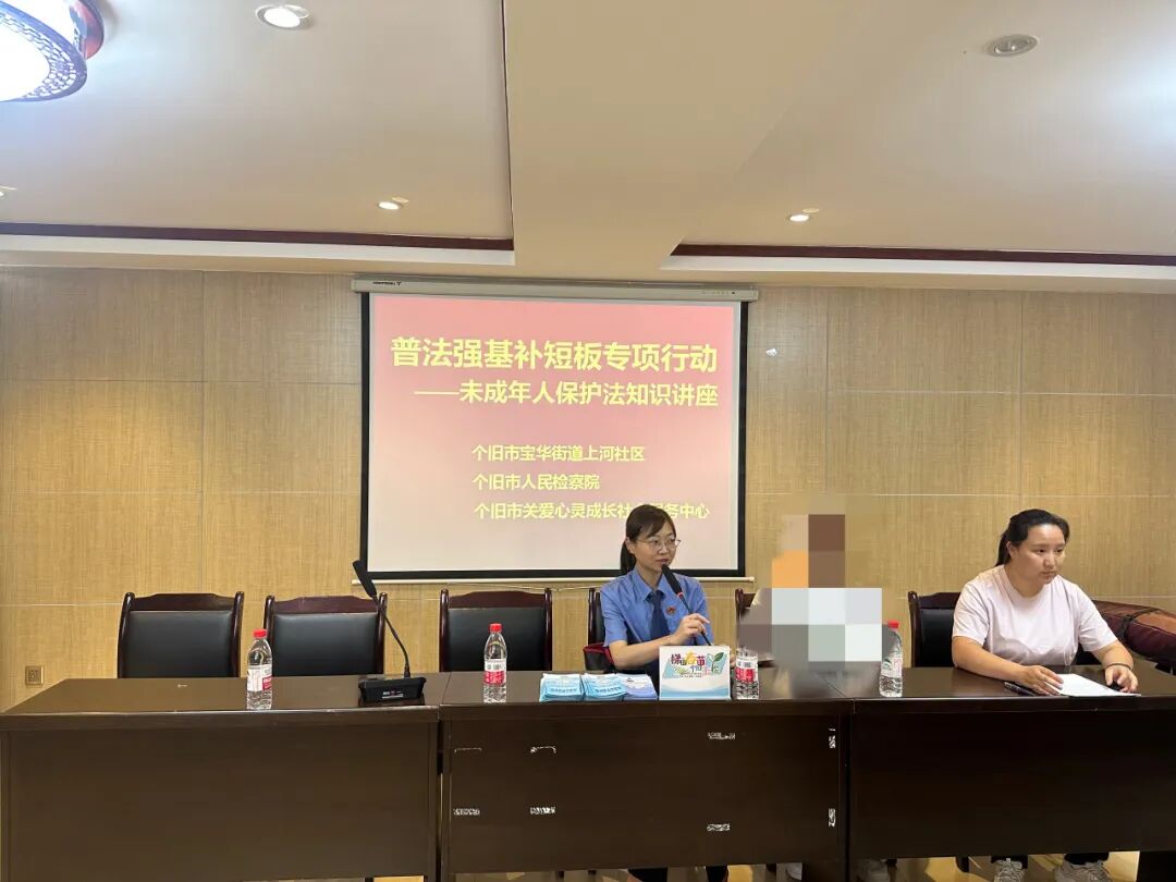 为深入推进普法强基补短板专项行动走深走实,提高未成年人的法律素质和维护自身权益的能力,让法治更好呵护青少年成长,个旧市人民检察院联合个旧市关爱心灵成长社会服务中心到个旧市宝华街道上河社区开展普法宣讲活动,并邀请涉罪未成年志愿者“现身说法”。活动邀请社区干部、学生及家长共30余人参与。