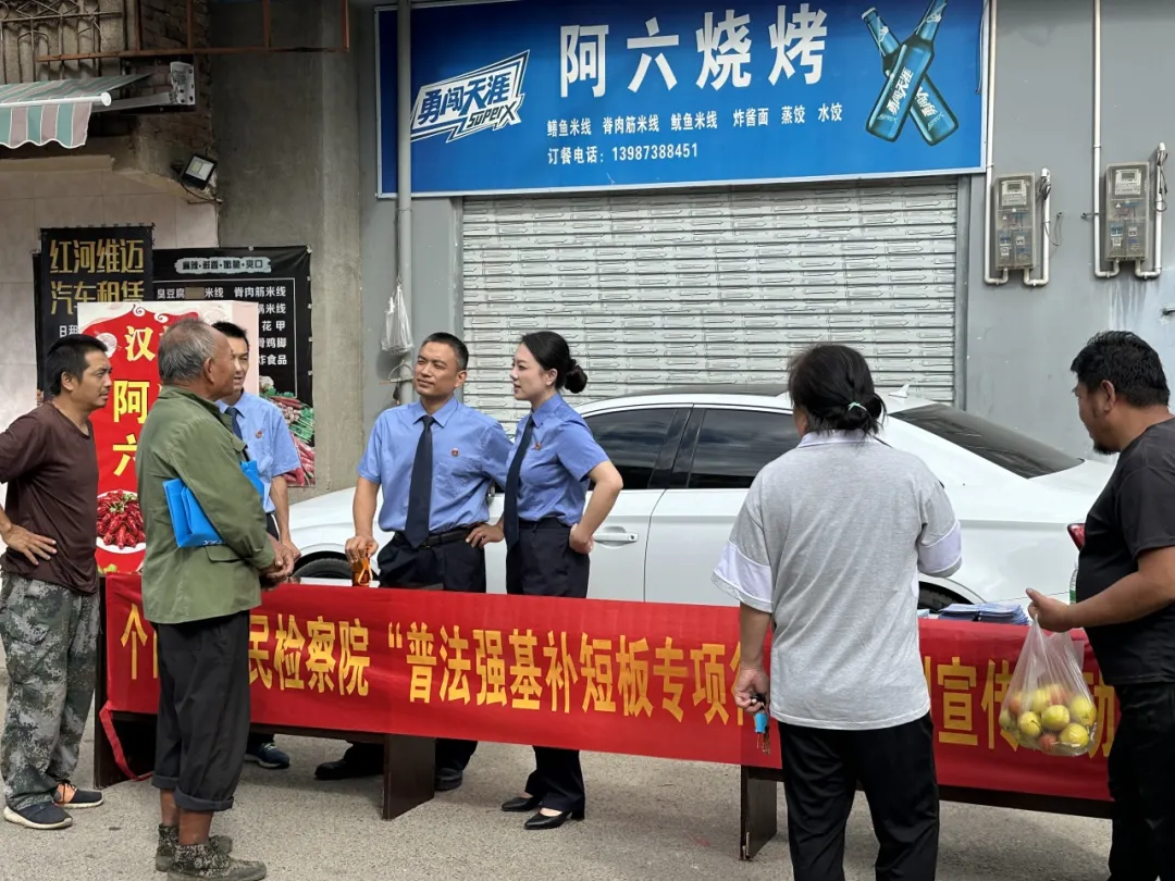 为推进“普法强基补短板”专项行动,增强群众法治观念,提高群众法律意识,2024年9月29日上午,正值个旧市鸡街镇赶集日,我院第一检察部派员前往开展了一场法治宣传活动。