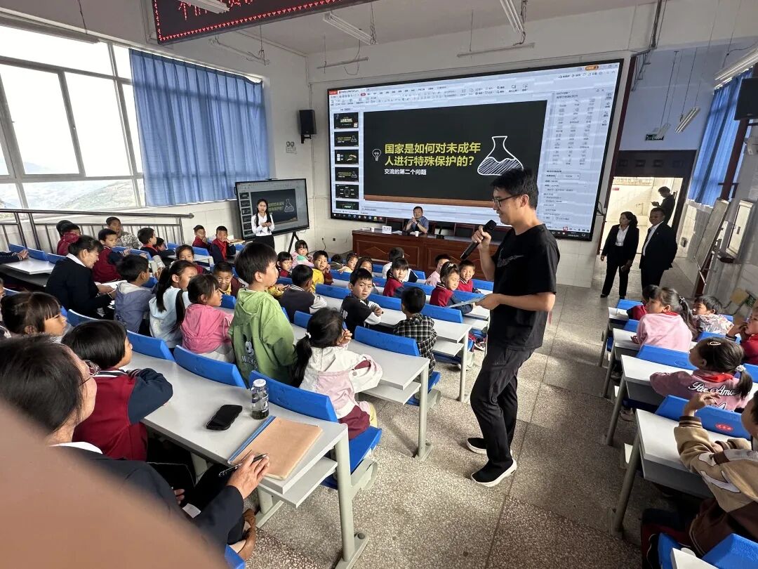 糜华检察长到个旧市贾沙中心校开展以“学法用法 让青春不迷茫”为主题的法治讲座,以此为“检教同行 共护成长”沉浸式法治宣传活动划上句号。
