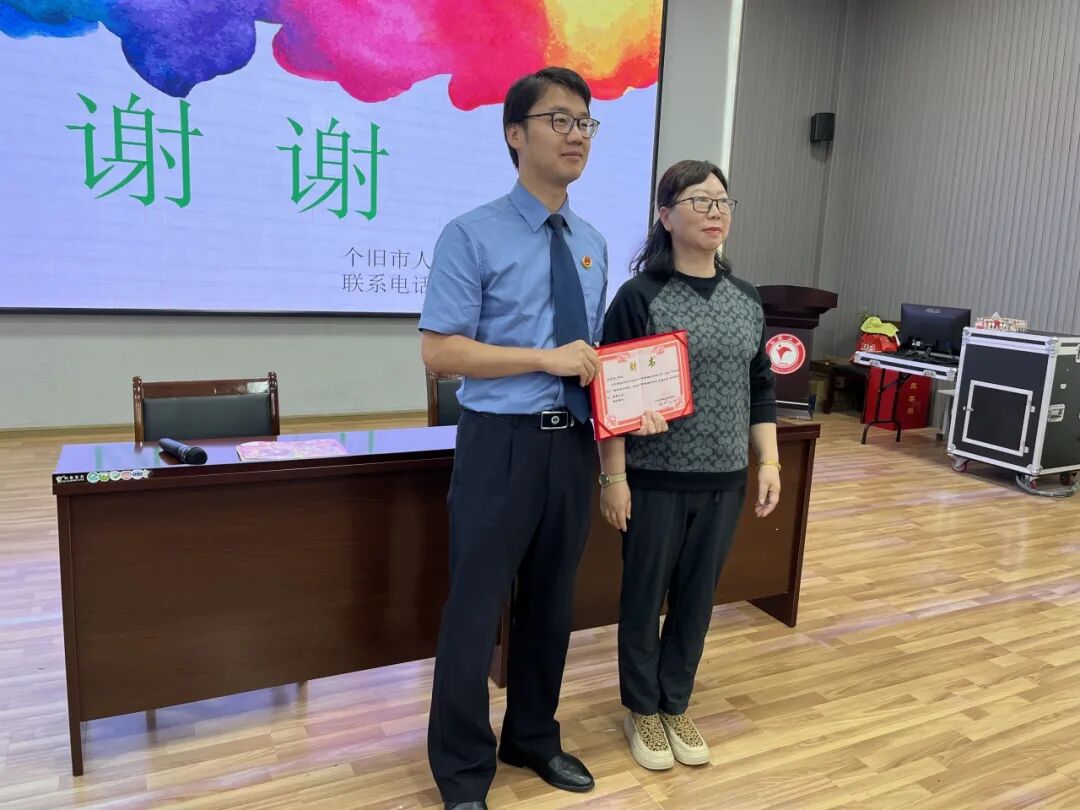 在红旗小学讲座结束后,学校还举行了简洁而庄重的法治副校长受聘仪式。校领导正式为我院未检检察官颁发了法治副校长聘书,对检察机关长期关心支持学校法治建设表示感谢。受聘检察官表示,担任法治副校长既是一份荣誉,更是一份沉甸甸的责任,将切实履行职责,协助学校开展法治教育、保护学生权益、维护校园安全。