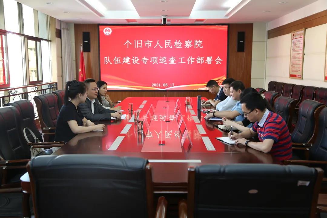 按照个旧市政法队伍教育整顿领导小组统一安排部署,5月17日,个旧市人民检察院政法队伍教育整顿队伍建设巡查工作部署会召开,市巡查工作专班成员、市委巡察办主任黄祥、成员白雪艳、唐湉,市人民检察院党组班子成员参加会议,党组书记、检察长糜华主持会议。