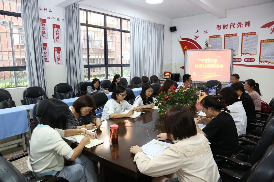 第一连:个旧市人民检察院检察长糜华到个旧中学开展座谈,以此开启“梯田春苗 个旧未检”本次校园法治文化月活动的序幕。座谈会上,糜检向教职工讲解了强制报告制度,明晰学校及教职员工对未成年人的保护职责,强调师德师风建设不容疏忽。此外,糜检对该校学生家长代表进行了亲职教育,明确了未成年人家长对未成年人的保护、教育职责,通过座谈强化父母或其他监护人的监护能力和责任意识。