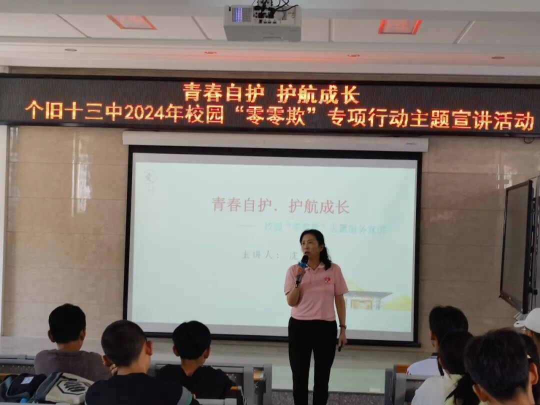 为了进一步织密织细未成年人保护网,个旧市人民检察院四级调研员、心理咨询师沈芳应邀到个旧市沙甸鱼峰小学、个旧市第十三中学以“青春自护 护航成长”为主题开展校园“零零欺”志愿服务宣讲。