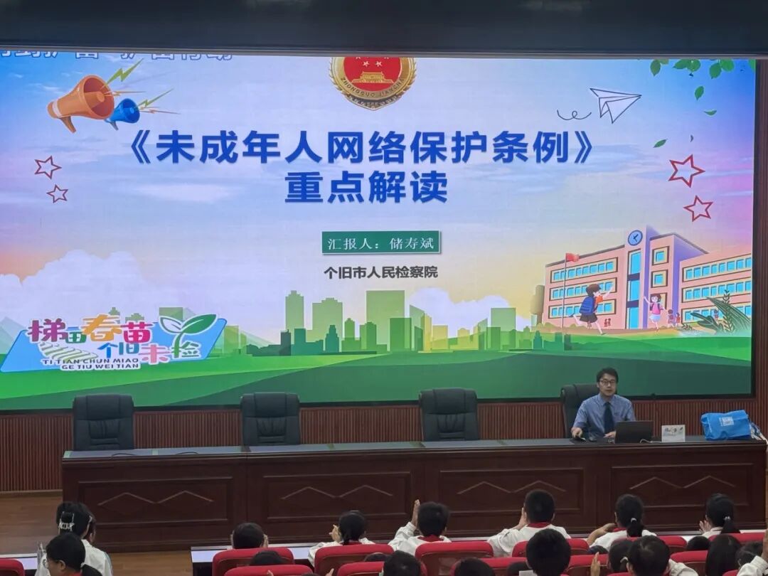 讲座聚焦《未成年人网络保护条例》,检察官结合未检工作实际,用通俗易懂的语言,向同学们详细解读了《条例》中关于提升网络素养、网络信息内容规范、个人信息网络保护、网络沉迷防治等重点内容,引导同学们认识到网络空间并非“法外之地”,既要学会利用网络资源助力学习成长,也要自觉抵制不良信息侵害,规范自身网络言行,保护好个人隐私安全,做到文明上网、安全用网。